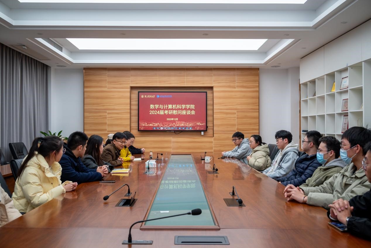 12月7日中午,数学与计算机科学学院在学11-305召开2024届考研慰问座谈会。学院常务副院长冯海林、党委副书记黄萍、毕业班辅导员陈瑞珂和2024届考研学生代表参与会议。此次座谈会旨在为正在备战考研的同学们加油打气,坚定冲刺信心。